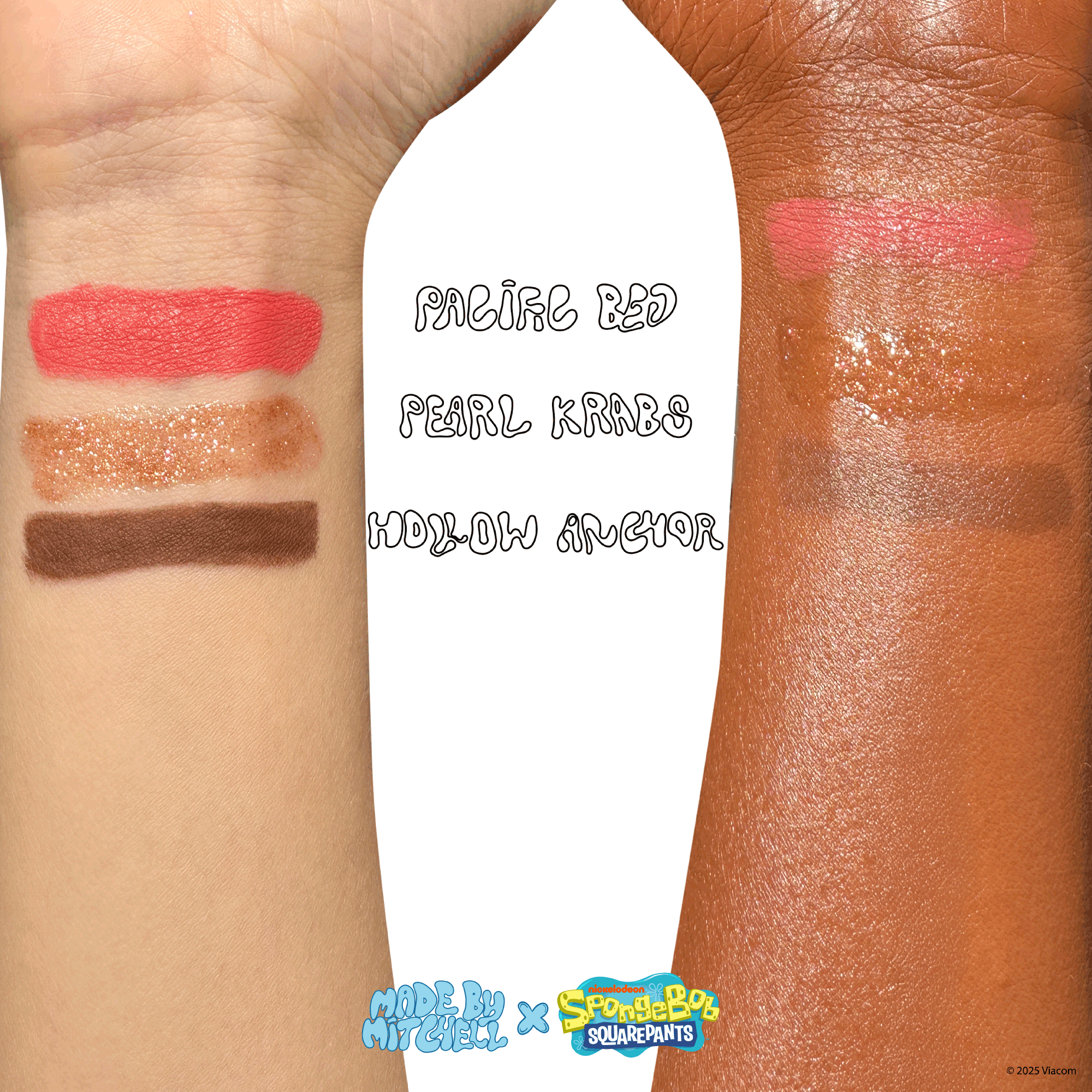 A rich coral cream blush housed inside a Krabby Patty inspired compact delivering smooth blendable pigment with a soft dewy finish.